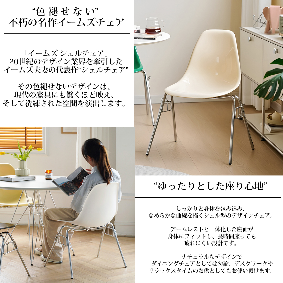 こちらは、スタッキングができる脚部を持つ、Dining Side-chair Stacking-baseでDSS シェルチェアとなります。