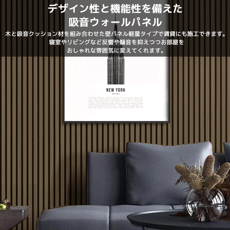 木と吸音クッション材を組み合わせた壁パネル軽量タイプで賃貸にも施工できます。