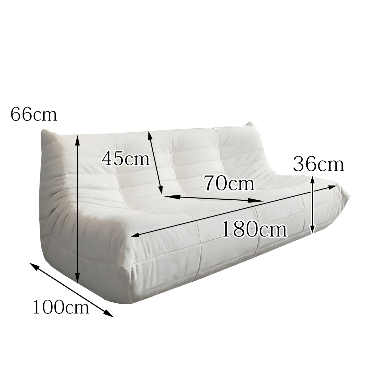 ソファ:幅180~187(耳含む)cm*奥行き100cm*高さ66~70(耳含む)cm*座面高36cm