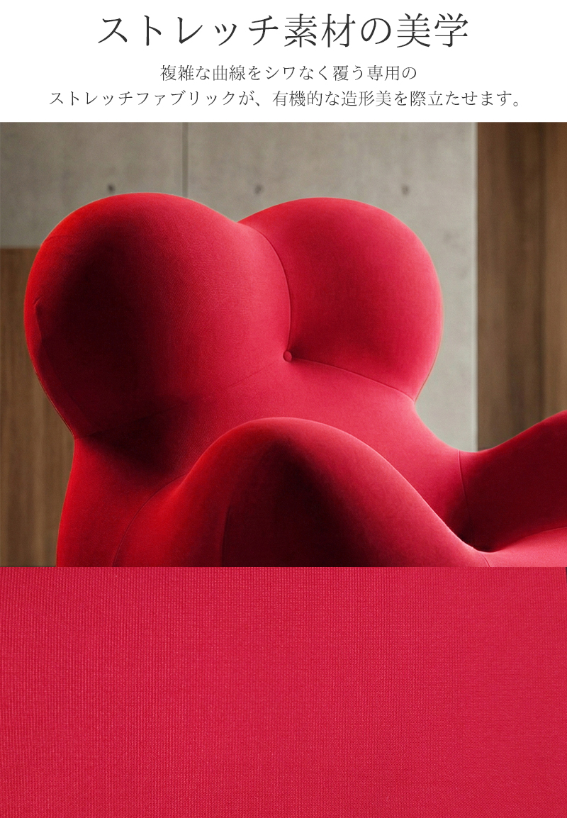 ストレッチ素材の美学: 複雑な曲線をシワなく覆う専用のストレッチファブリックが、有機的な造形美を際立たせます。