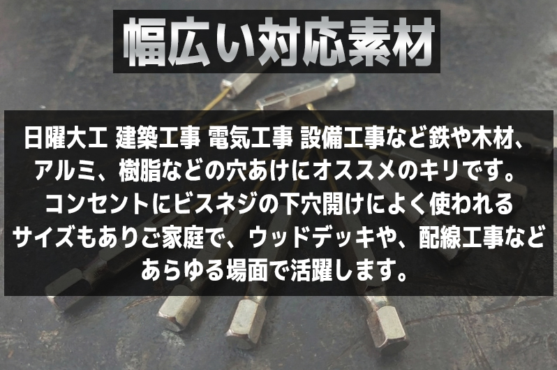 木材、プラスチック、アルミ、鉄、ステンレスなど穿孔における作業効率を最大化します。