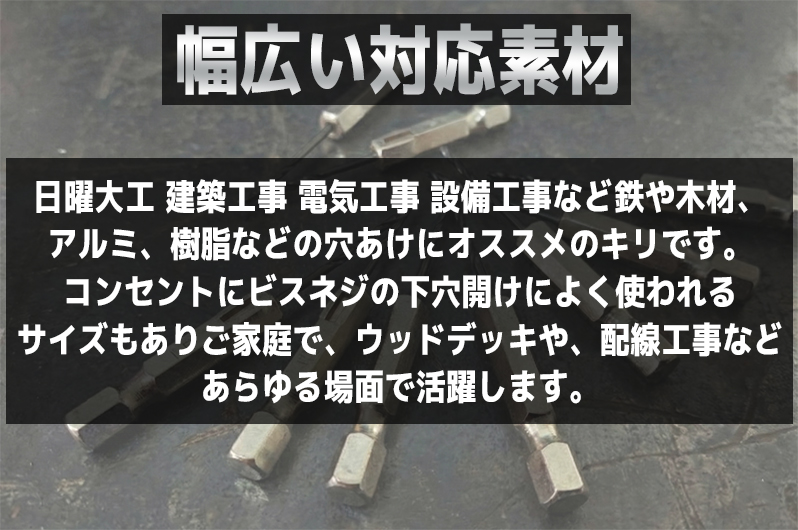 木材、プラスチック、アルミ、鉄など穿孔における作業効率を最大化します。