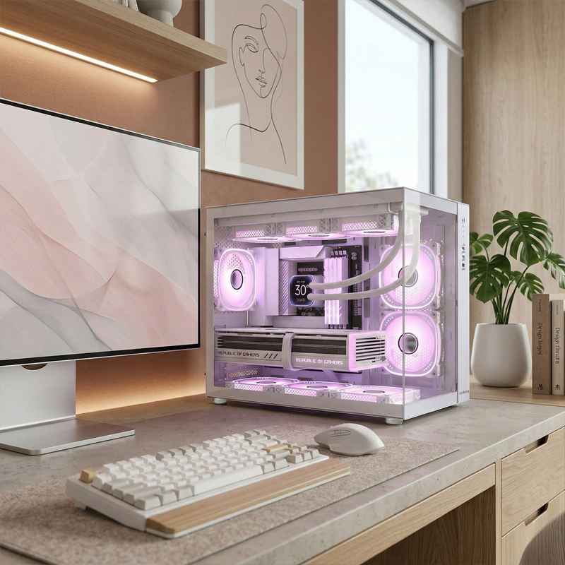 内部のすべてのコンポーネントをあたかもアートピースのように展示する、視覚的満足度を極限まで高めた筐体です。