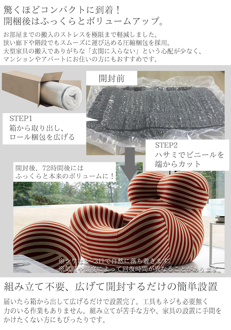 3.密閉された袋を開けると、ソファはすぐに膨らみ始めます。