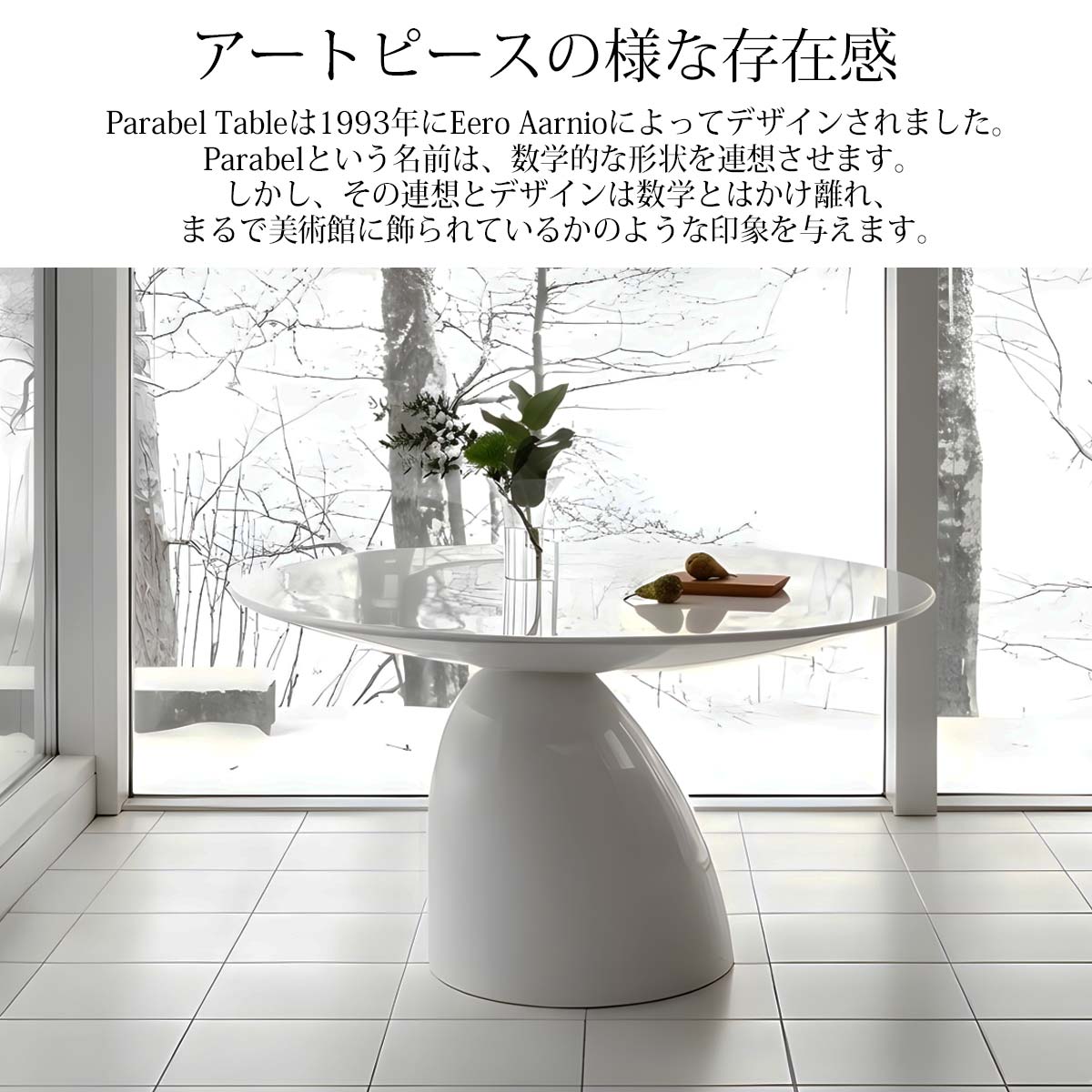 パラベルは、彫刻的な美学を流麗に体現したホワイトカラーのみで展開されています。