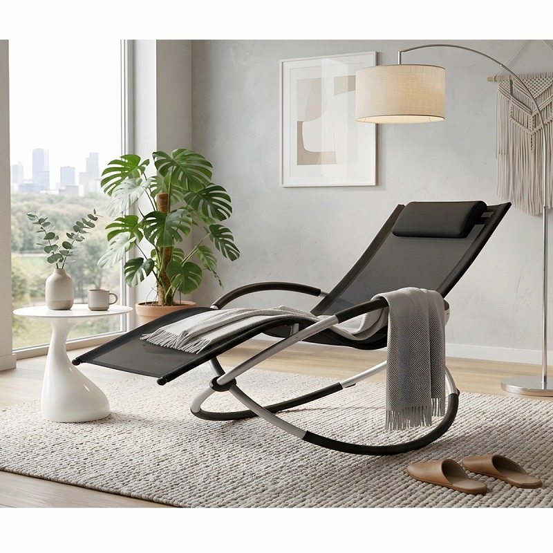 X型によりコンパクトに畳んで収納でき、簡単にどこにでも持ち運べる理想的なロッキングチェア。