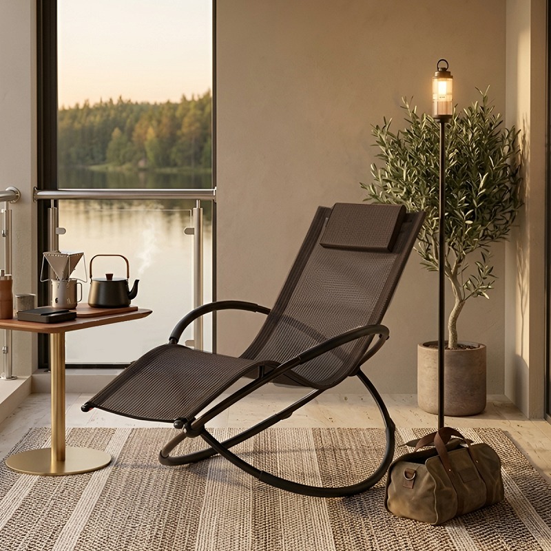X型によりコンパクトに畳んで収納でき、簡単にどこにでも持ち運べる理想的なロッキングチェア。