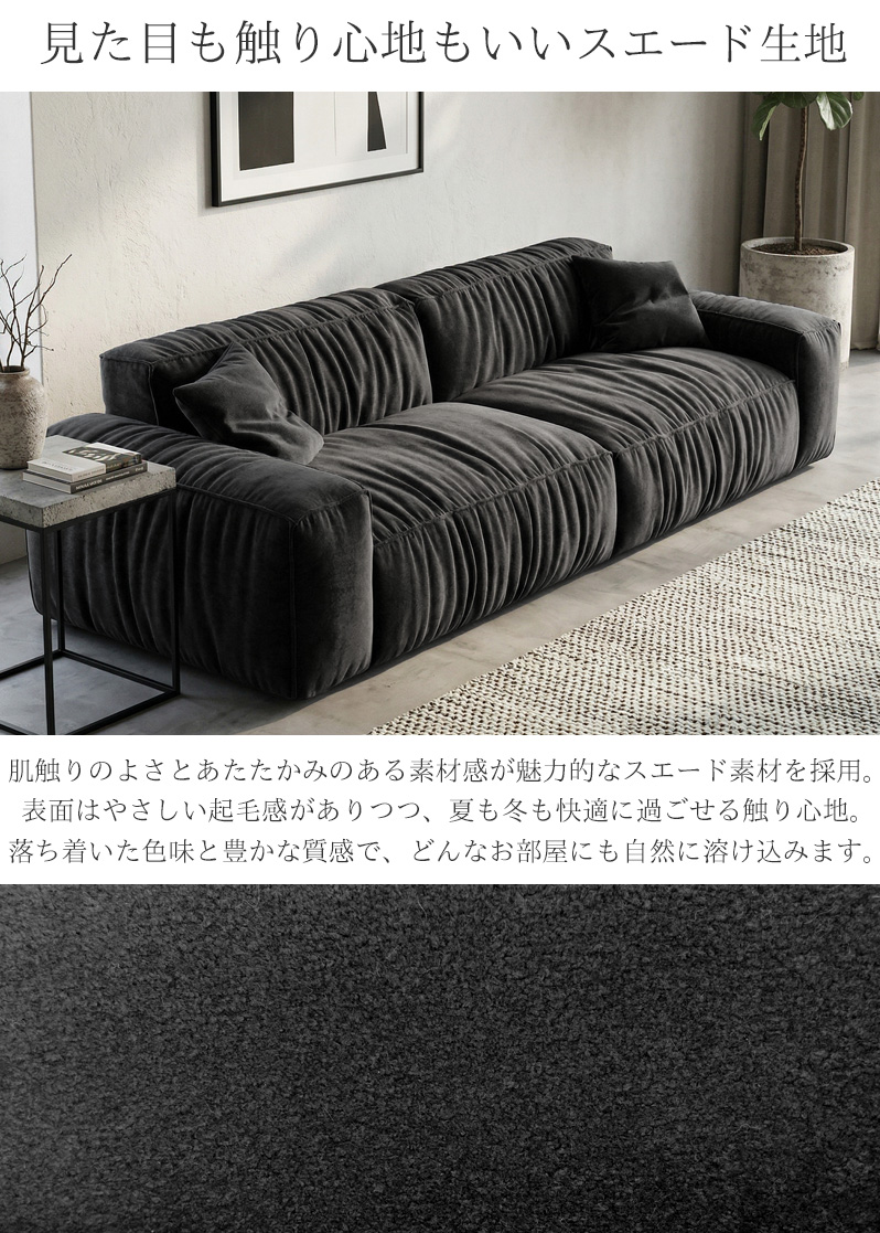 肌触りのよさとあたたかみのある素材感が魅力的なスエード素材を採用。