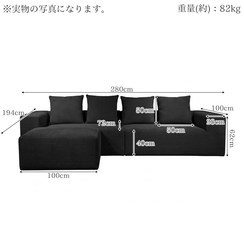 SFA-18BK カウチソファ 280cm 3人掛け ソファ