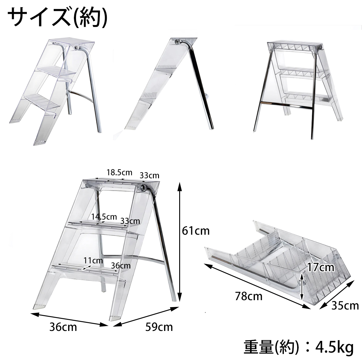 脚立 ステップ 3段 アクリル UPPER KW-13CL
