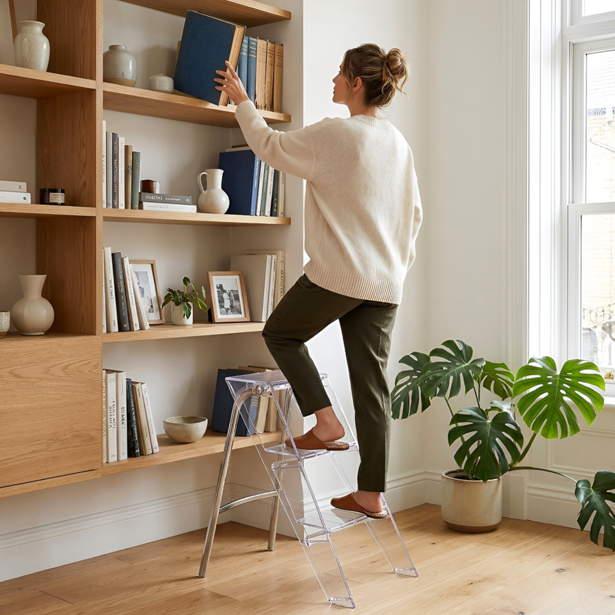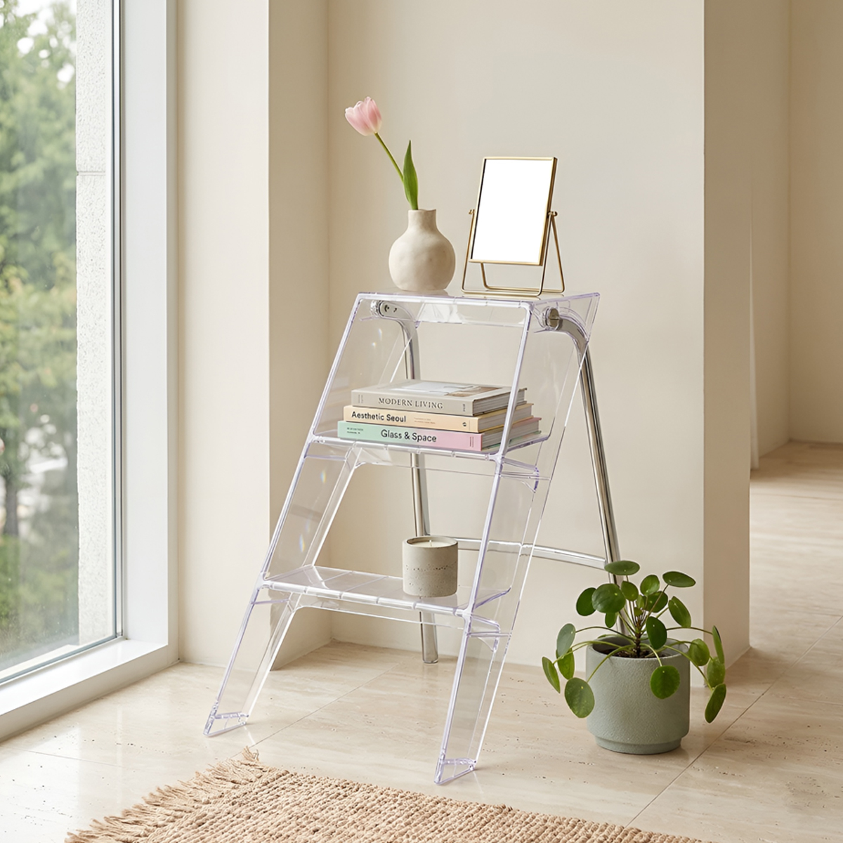 脚立としての使用だけでなく、観葉植物等をディスプレイする飾り棚にすれば、