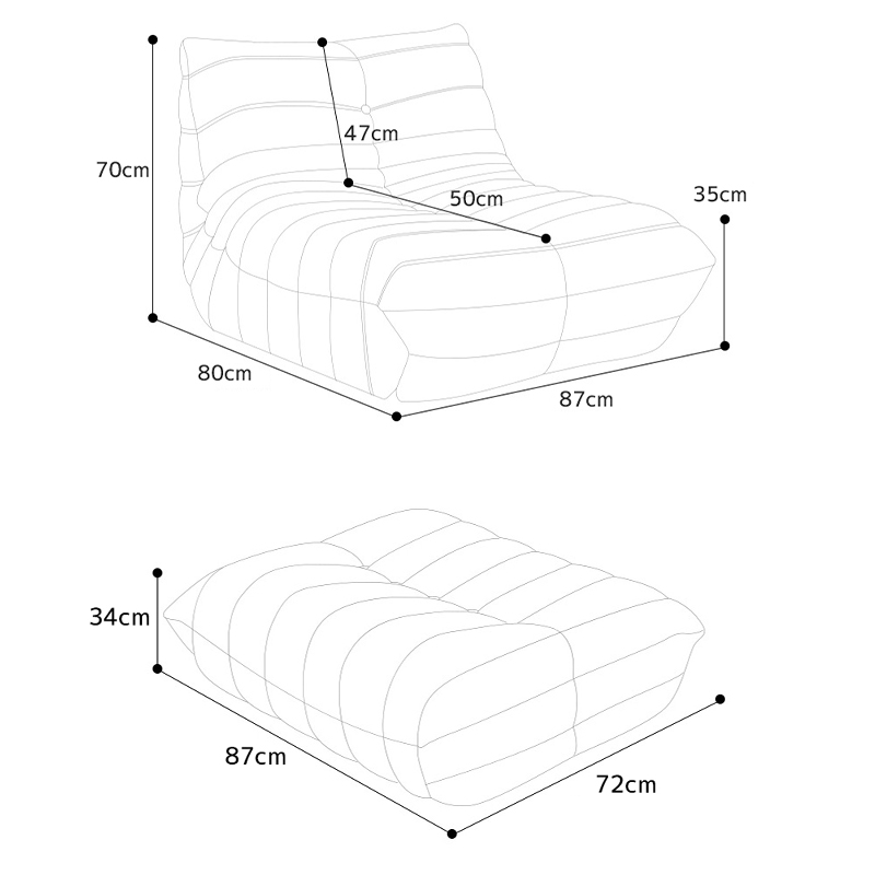 オットマン:幅87cm*奥行き72cm*高さ34cm