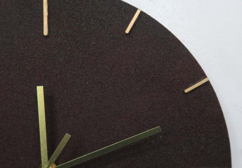 木製の時計に塗装したセメントを吹き付けており、空間にさり気ないアクセントと重厚感を与えてくれます。