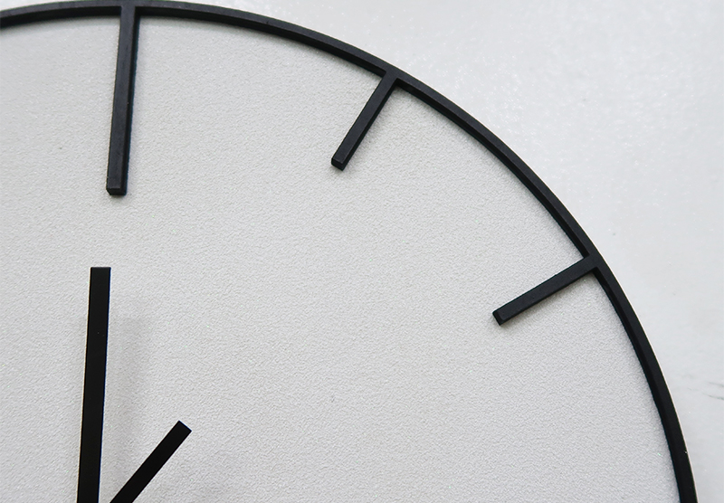 木製の時計に塗装したセメントを吹き付けており、空間にさり気ないアクセントと重厚感を与えてくれます。