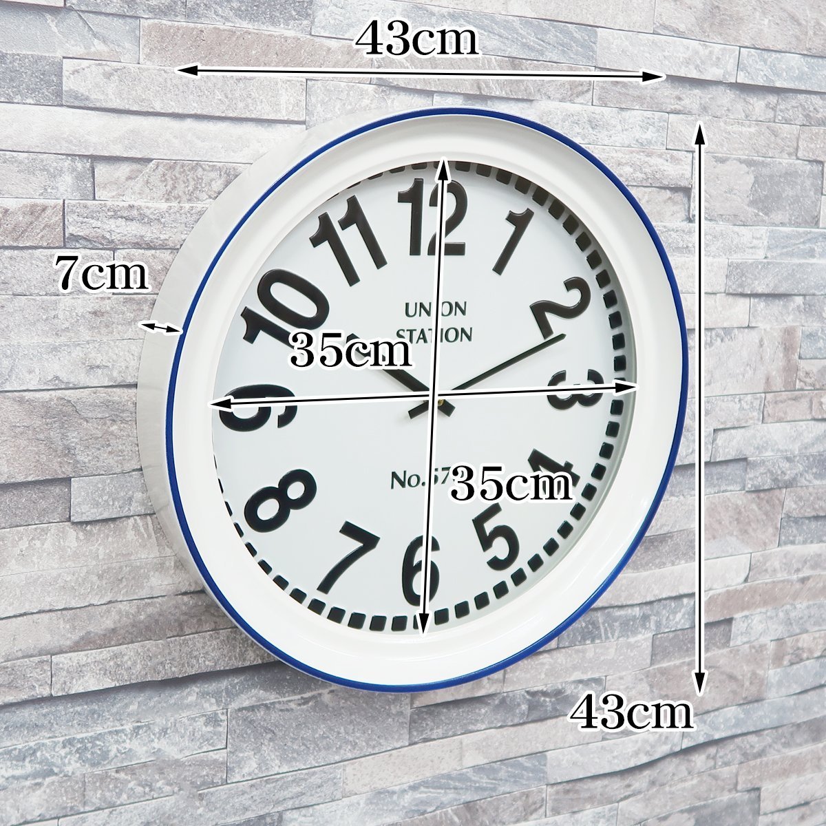 サイズ(約):高さ43cm、横43cm、文字盤35cm、奥行7cm