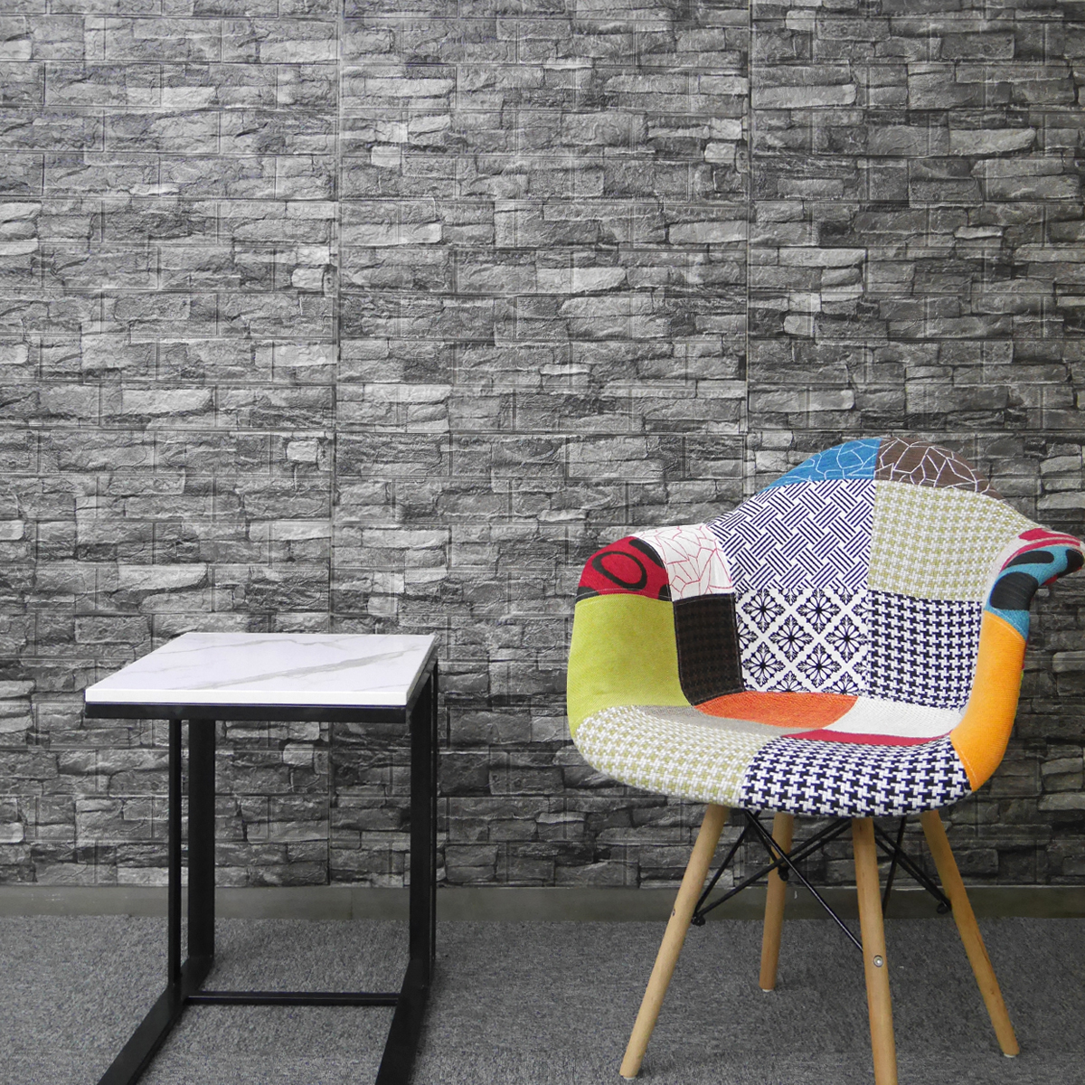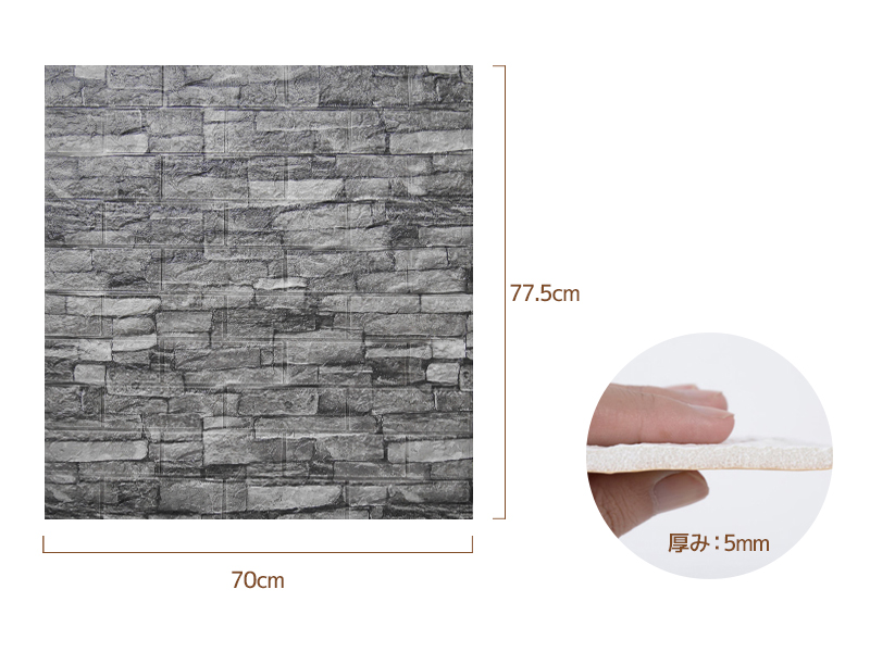 石目レンガの凸凹も忠実に再現したのり付き立体壁紙シートです。