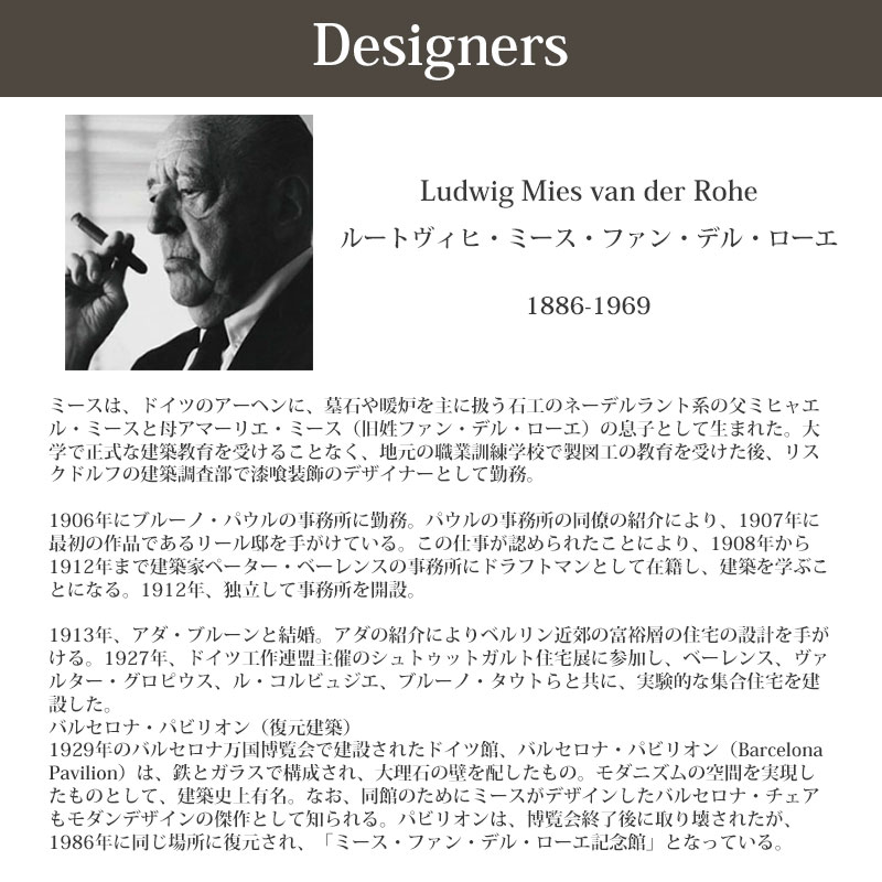 デザイナー:ルートヴィヒ・ミース・ファン・デル・ローエ / Ludwig Mies van der Rohe