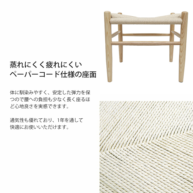 ※座面は職人の手で1つ1つ編み込まれたペーパーコードが使わております。ペーパーコード(紙の紐)というと弱い印象を受けるかもしれませんが、