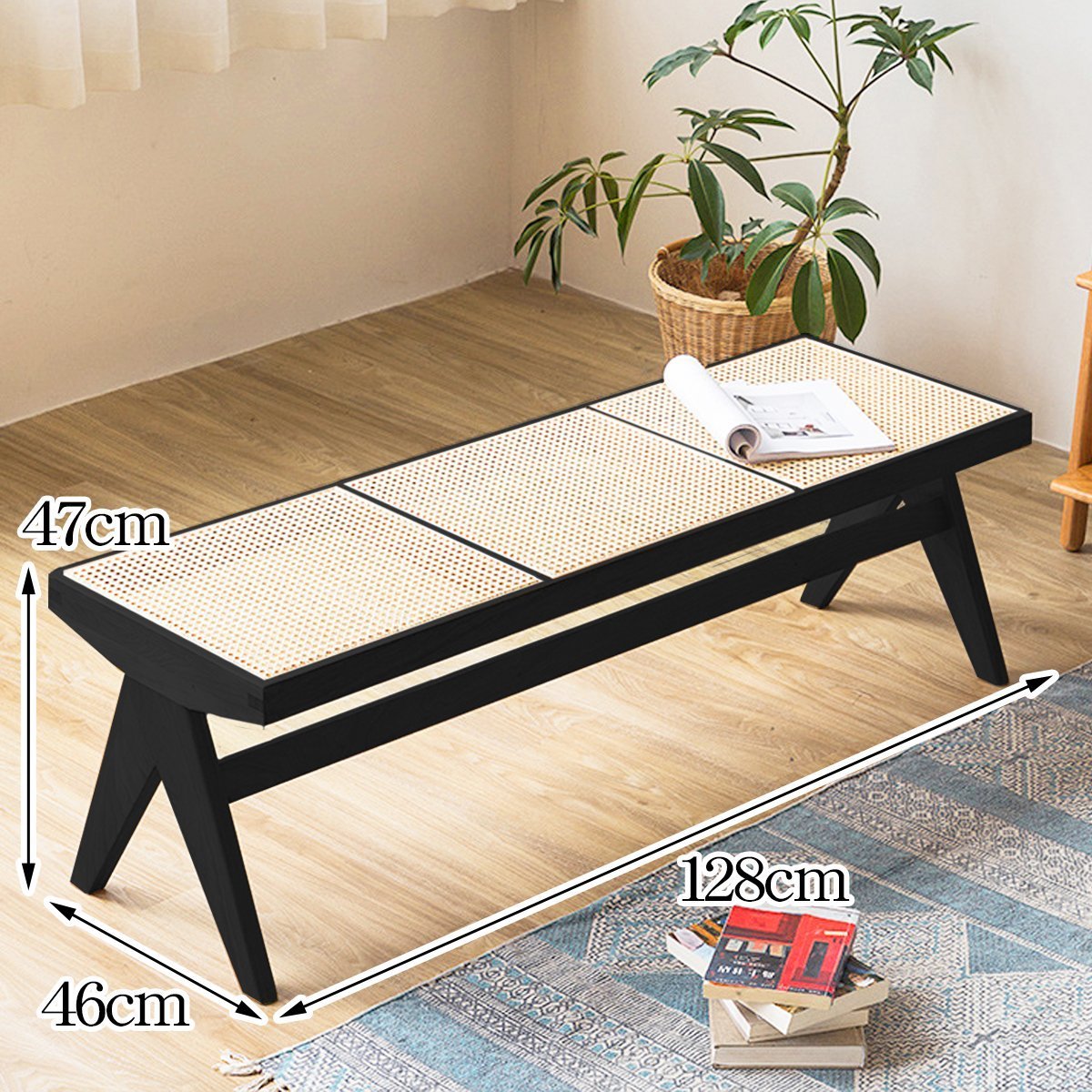 PH33BK ラタンベンチ 籐編み ラタンチェア 北欧