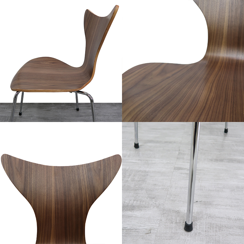 ヤコブセンの成形合板の可能性への探求と挑戦の姿勢を表す好例です。