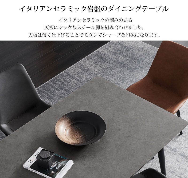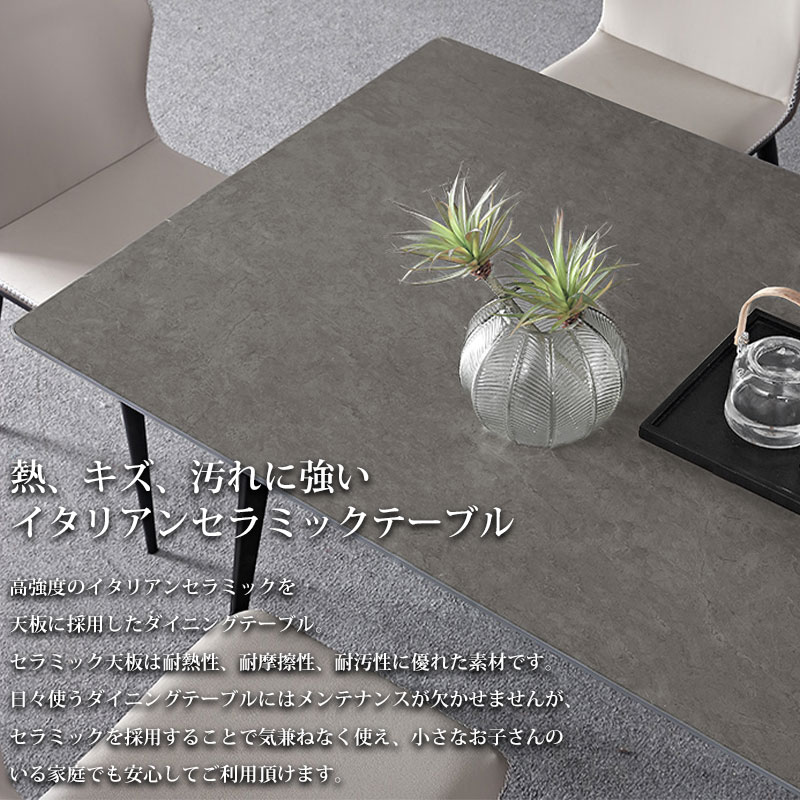 高強度のイタリアンセラミックを天板に採用したダイニングテーブル。