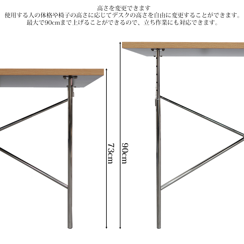 最大で90cmまで上げることができるので、立ち作業にも対応できます。