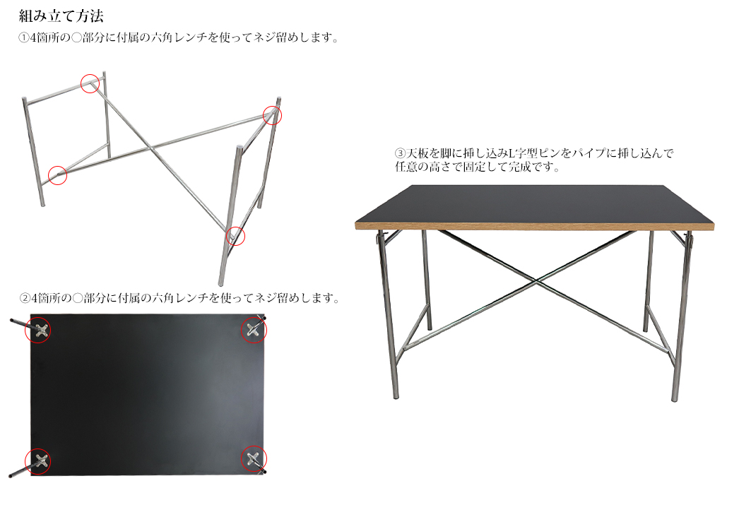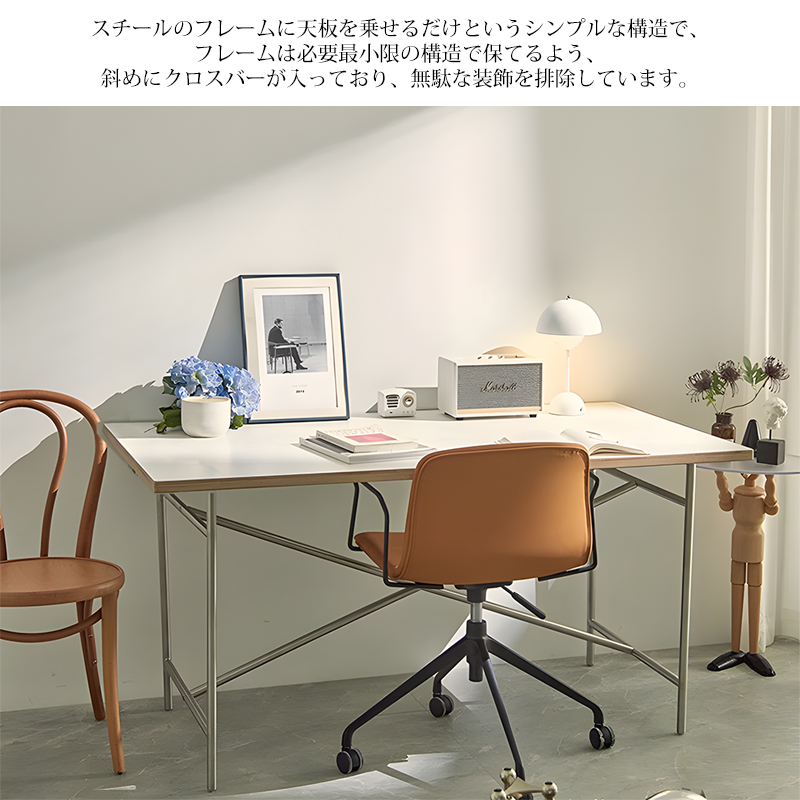 スチールのフレームに天板を乗せるだけというシンプルな構造で、