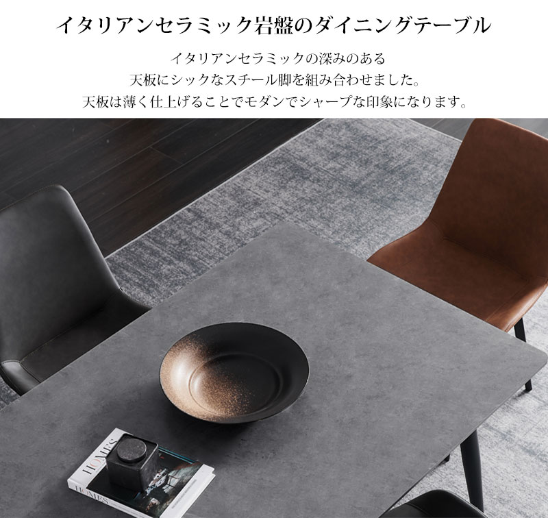 高強度のイタリアンセラミックを天板に採用したダイニングテーブル。