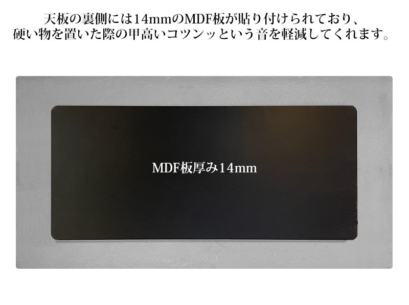■天板の裏側には14mmのMDF板が貼り付けられており、