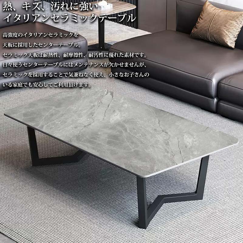 高強度のイタリアンセラミックを天板に採用したセンターテーブル。
