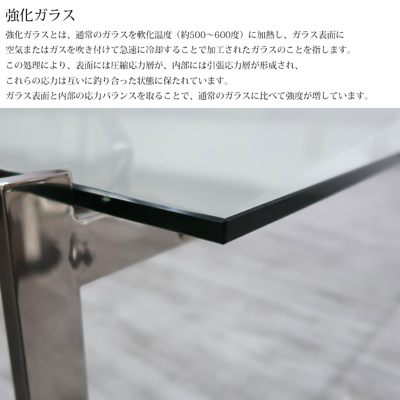 ガラス表面と内部の応力バランスを取ることで、通常のガラスに比べて強度が増しています。
