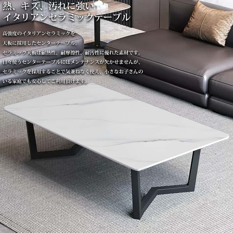 高強度のイタリアンセラミックを天板に採用したセンターテーブル。