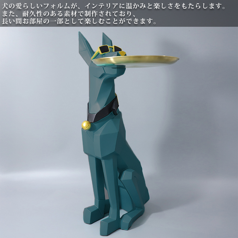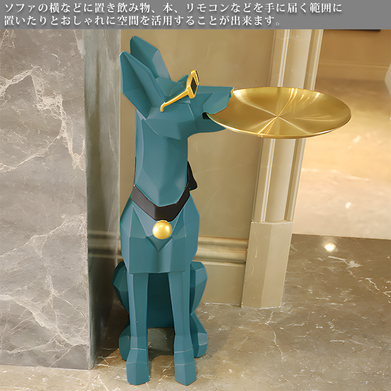 犬がトレーを咥えているようなデザインのサイドテーブルは、ユニークで魅力的なアクセントアイテムです。