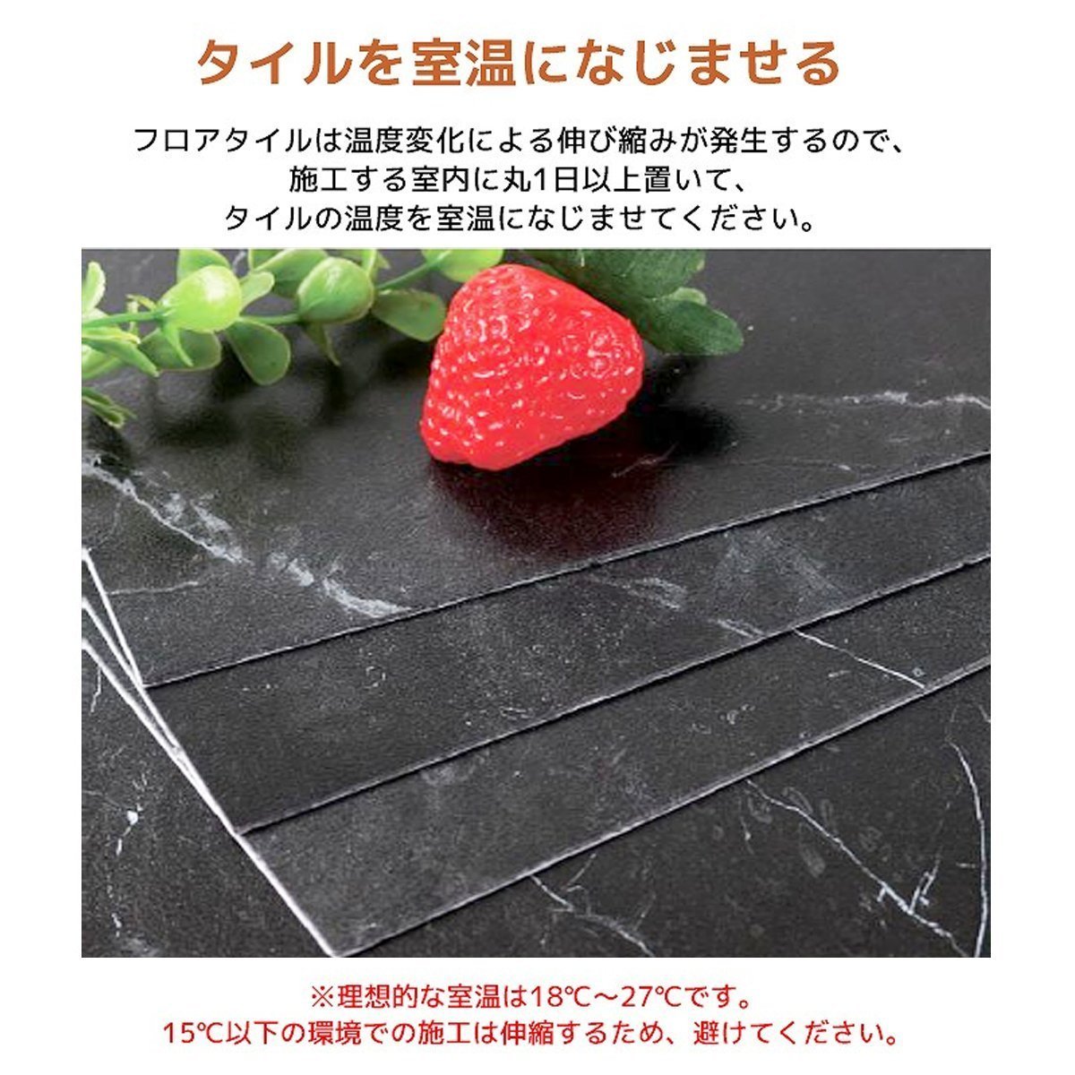 ・気温や湿度の変化でタイルが伸縮する場合があります。ぴったりと敷き詰めすぎると、