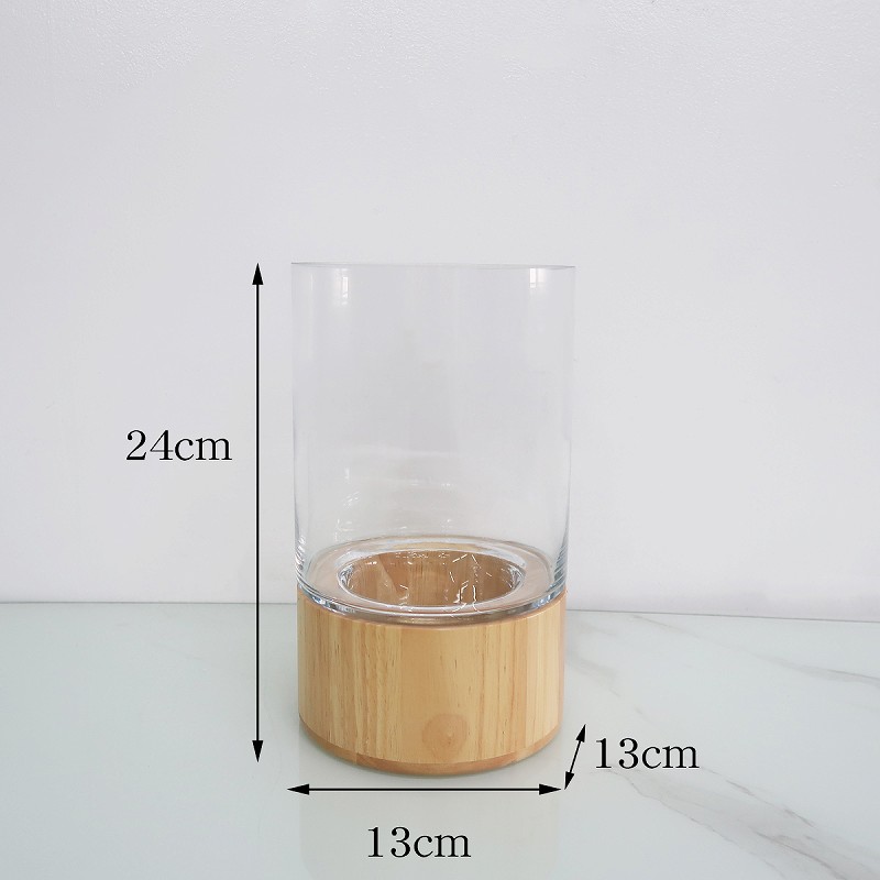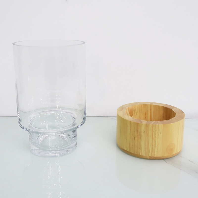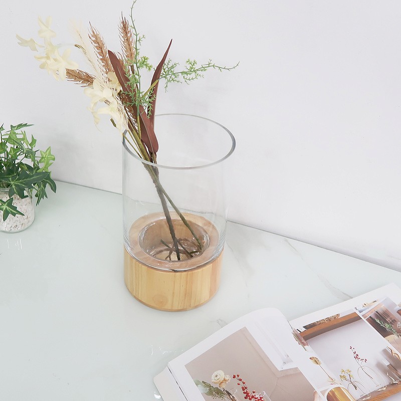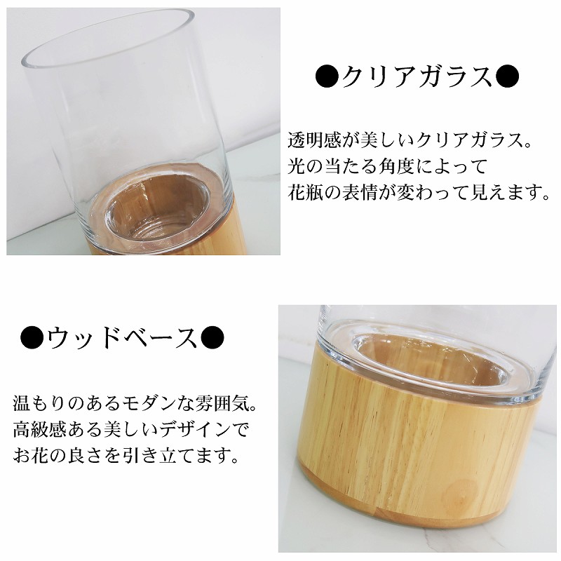 透明感が美しいガラスと木の温かみを感じるウッドベースは