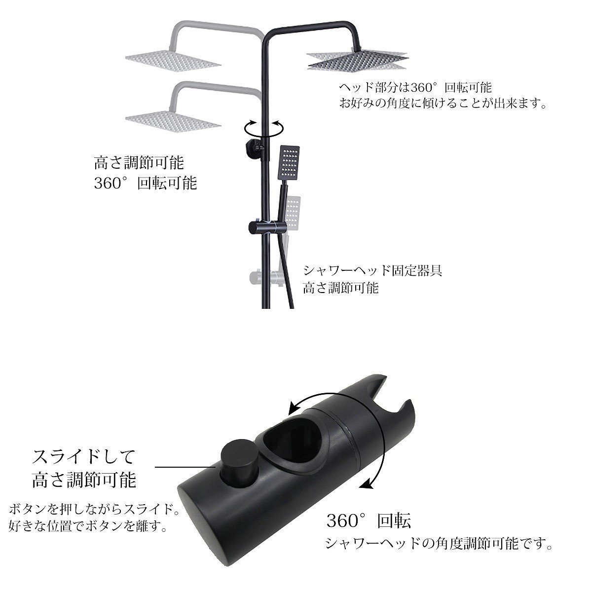 ハンガー部を上下させることによりハンドシャワーの高さを調節できます。