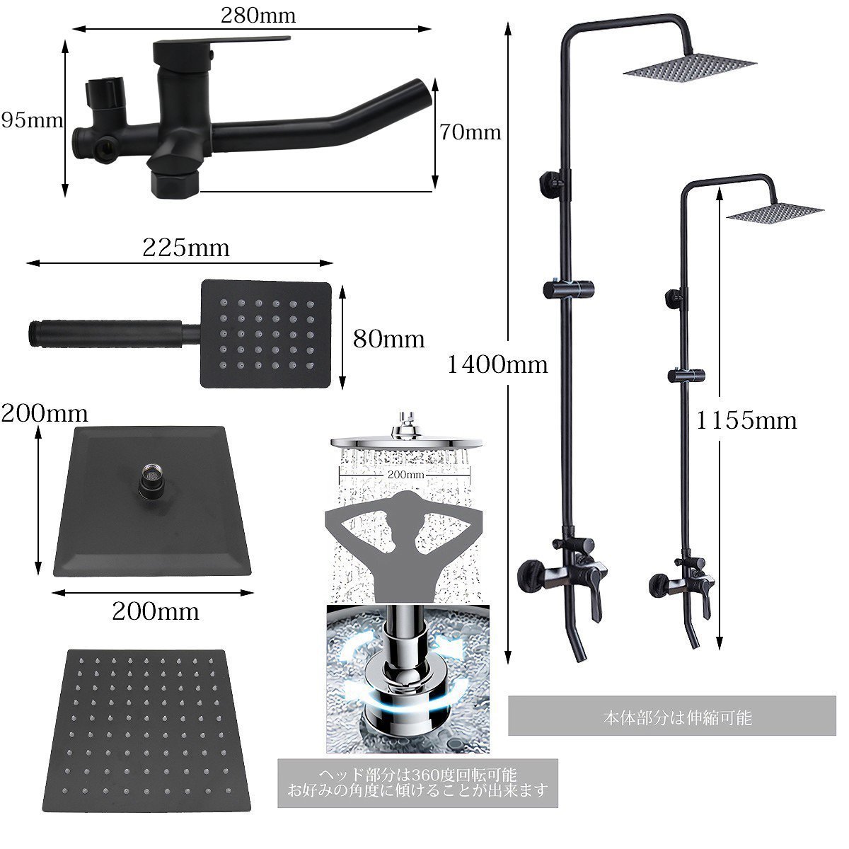 SW-08 シャワーバー ダブルシャワーヘッド 混合水栓