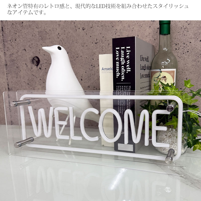 LEDネオンサイン ネオン管風 WELCOME インテリア ライト LED ネオンサイン 看板 サインボード 光る 光る看板 ネオン 部屋 玄関 子供部屋 NK-52GO
