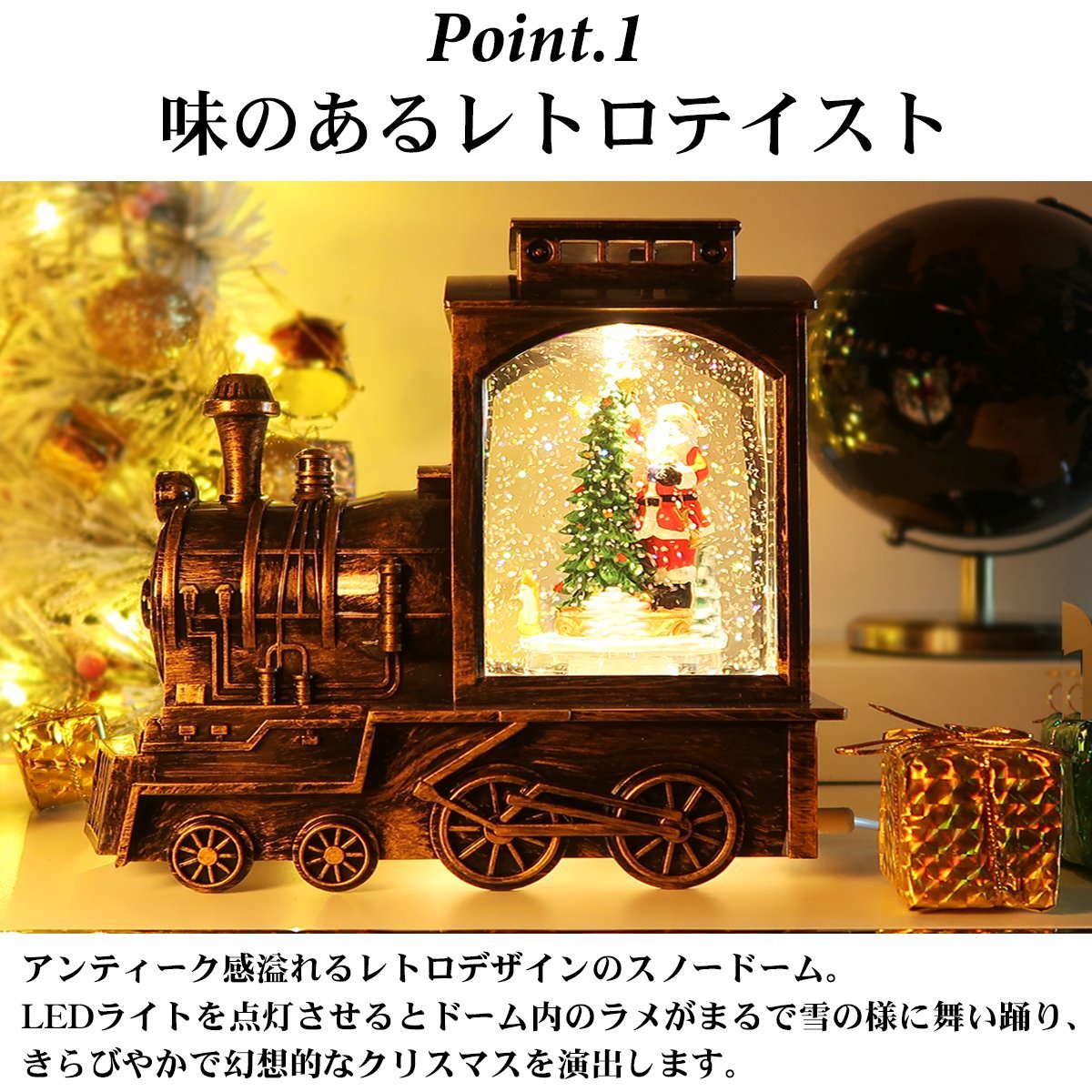 スノードーム クリスマス オルゴール ジオラマ Xmas 置物 機関車 トレイン サンタ スノーグローヴ ランタン LED USB 汽車 子供 プレゼント 20cm KR-157