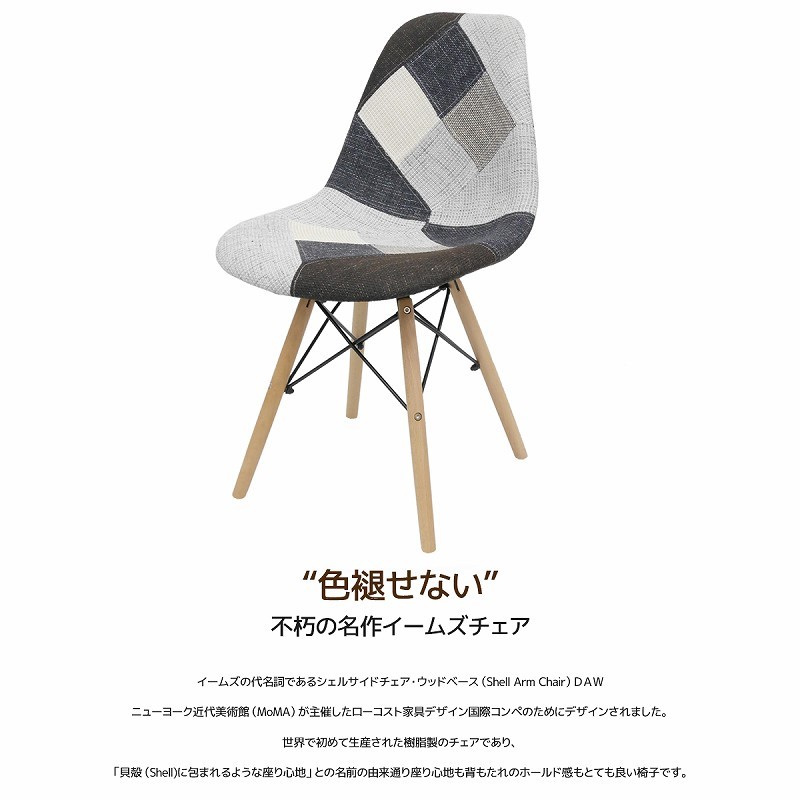 ダイニングチェア イームズ チェア パッチワーク Eames DSW スクープ デザイナーズ家具 イームズチェア ファブリック クラシック 1脚 EM-43