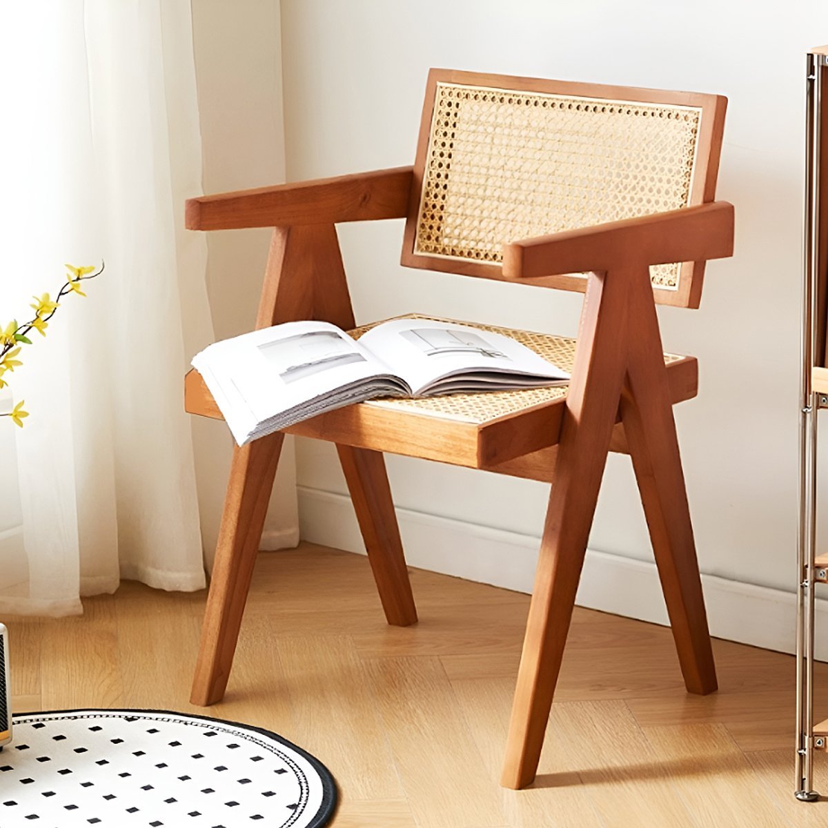 温かみのある天然木と和モダンな雰囲気のラタン素材の組み合わせが