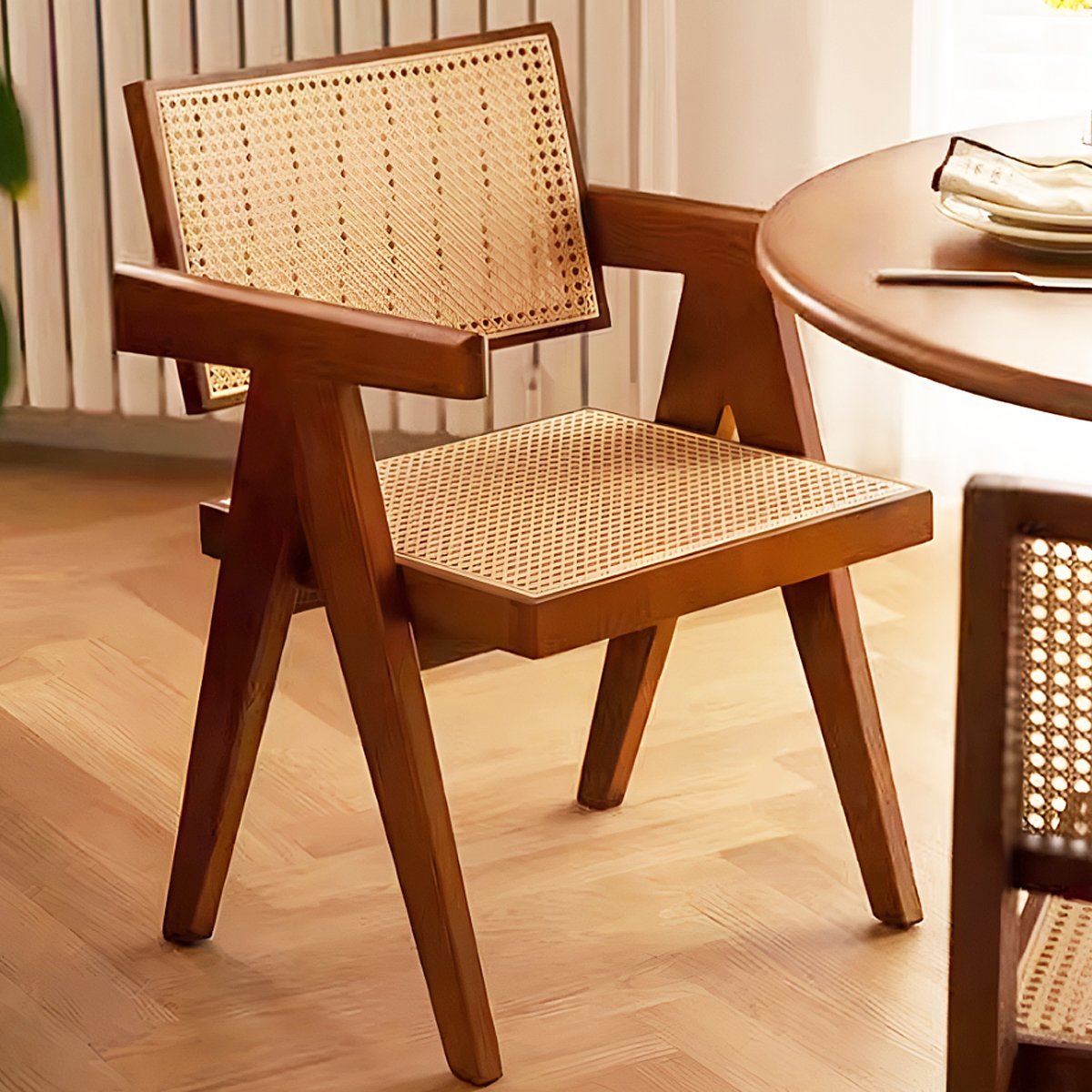 ラタンチェア 籐編み ラウンジチェア 北欧 ジャンヌレ Vレッグ オフィスチェア 一人掛け リビングチェア 椅子 PH28BR