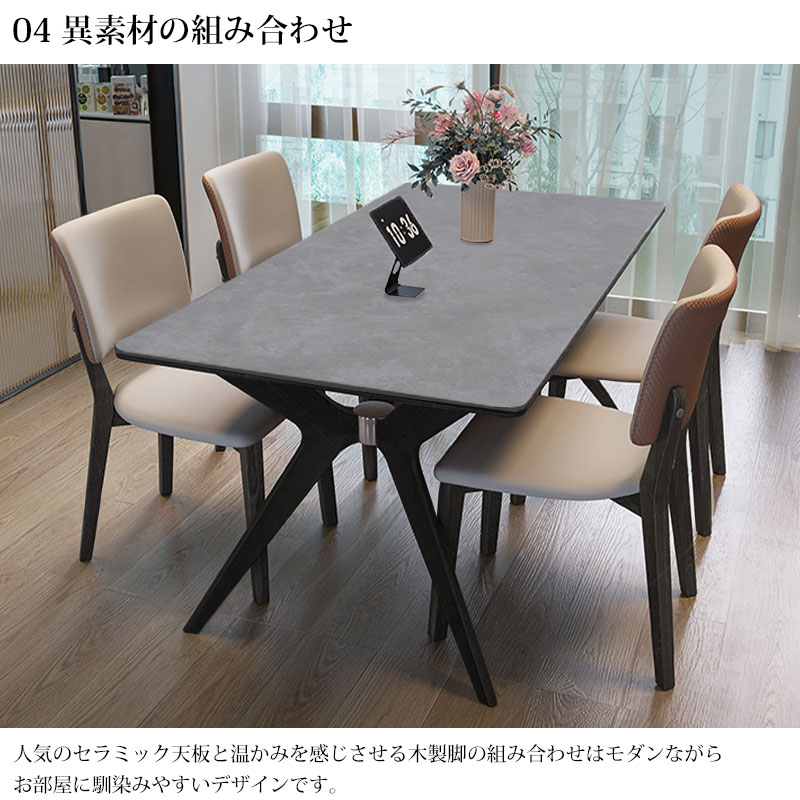 ダイニングテーブル イタリアン岩盤 セラミックトップ 木製 脚 4人掛け~6人掛け セラミック 天板 140x80cm DT-14GLBK